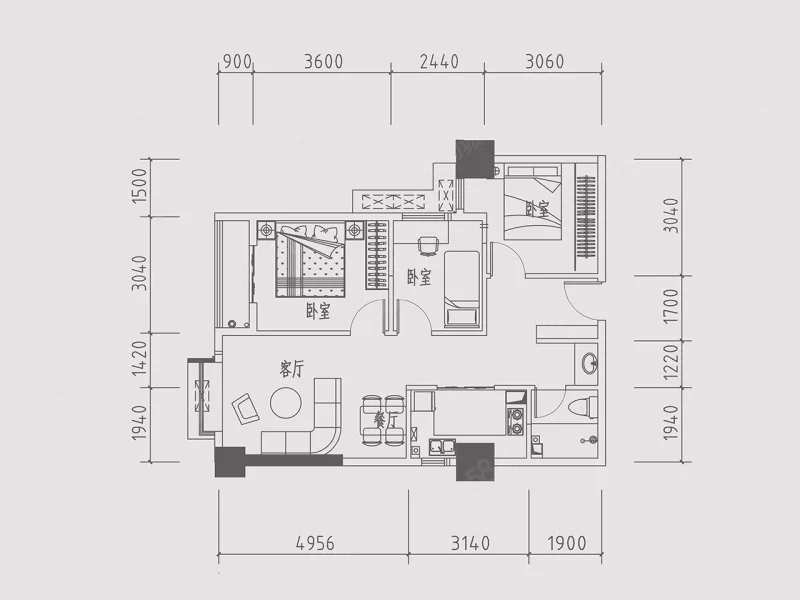 3 室 2 厅 1 卫