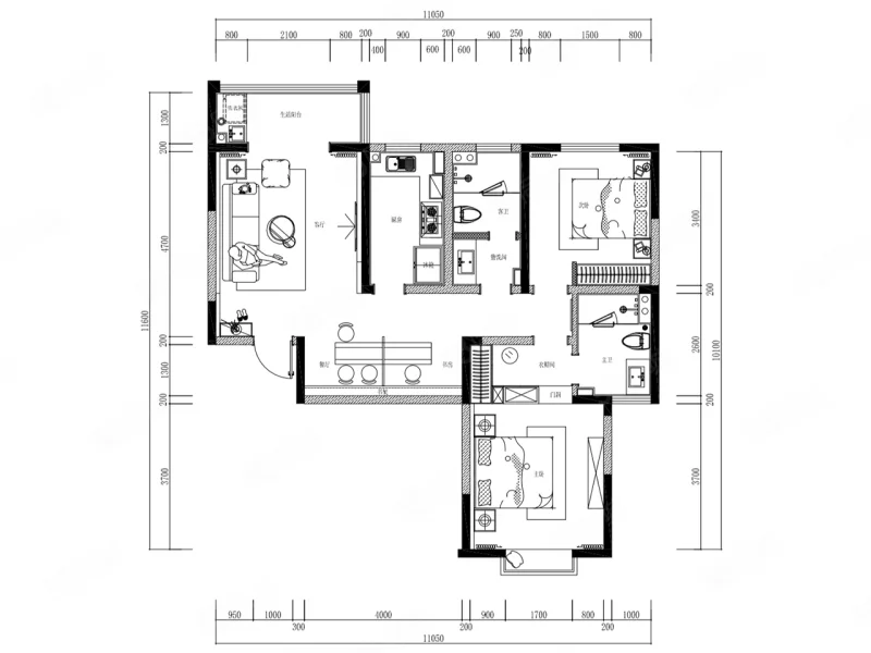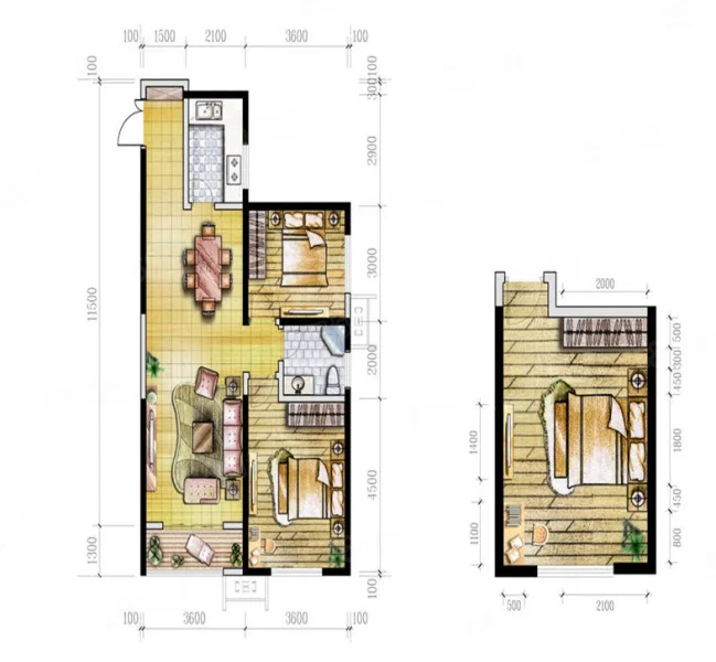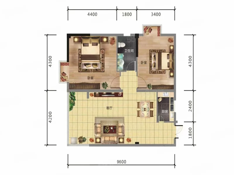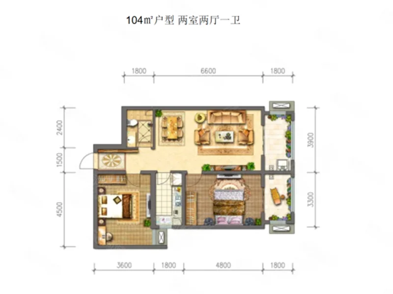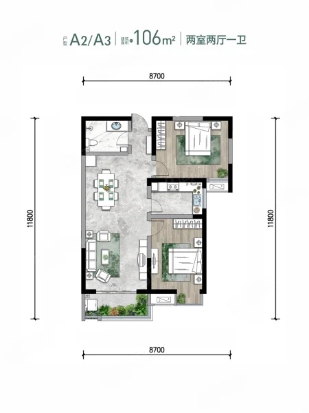 2 室 2 厅 1 卫