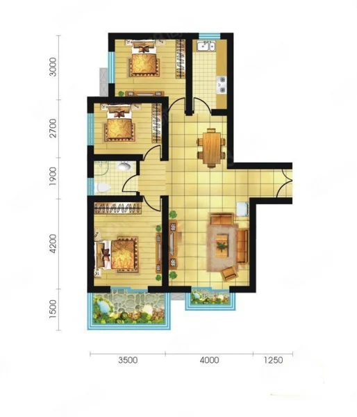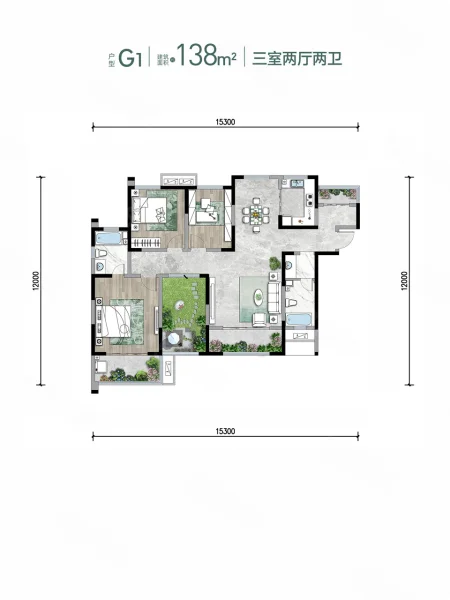 3 室 2 厅 1 卫