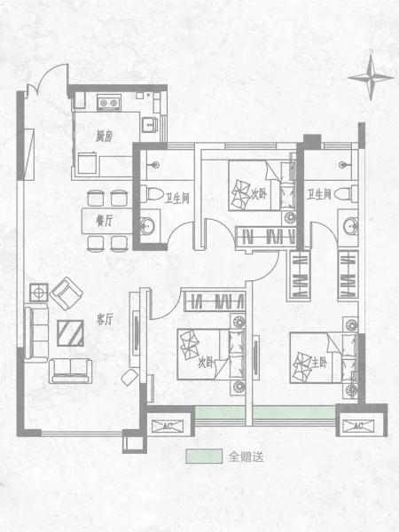 3 室 2 厅 2 卫