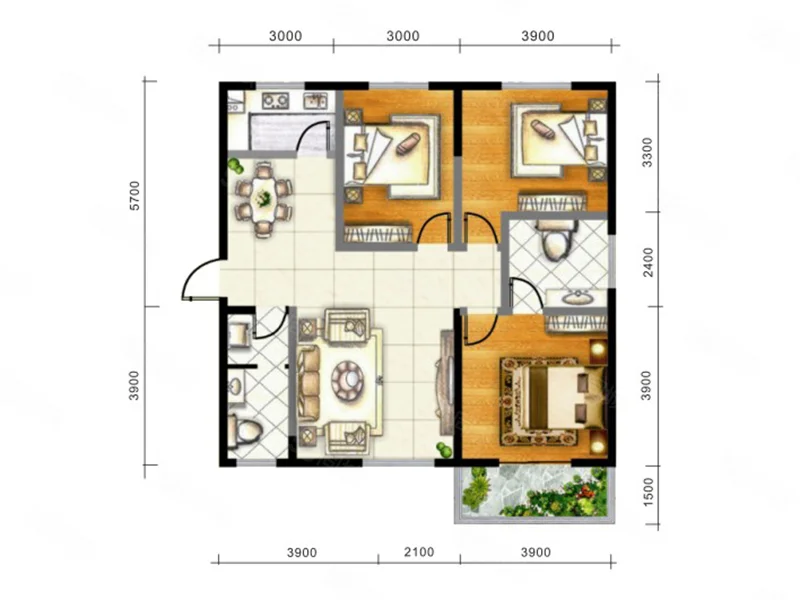 3 室 2 厅 1 卫