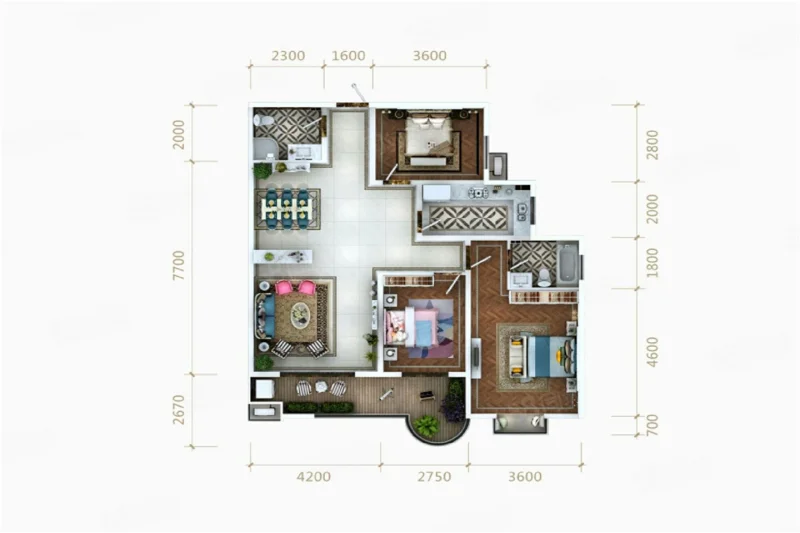 3 室 2 厅 1 卫