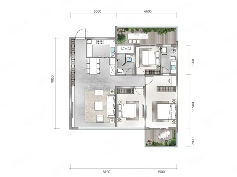 3 室 2 厅 2 卫