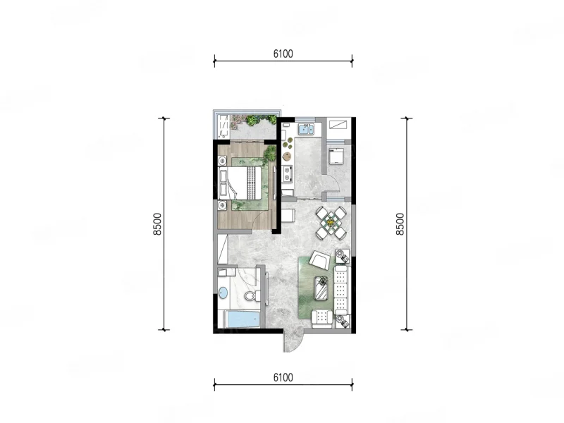 1 室 1 厅 1 卫