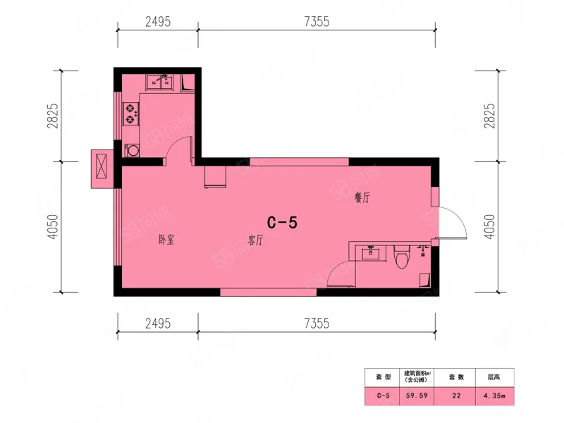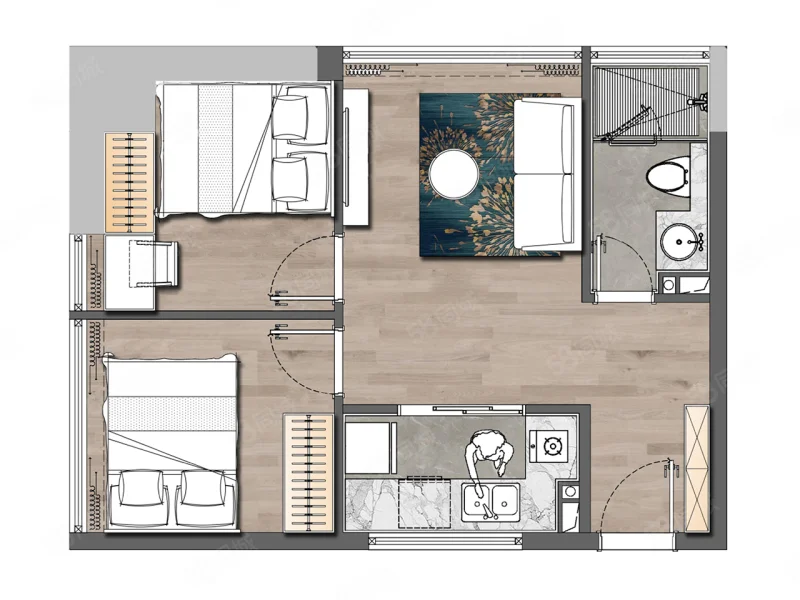 2 室 2 厅 1 卫