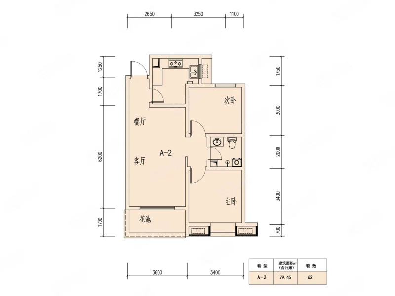2 室 2 厅 1 卫