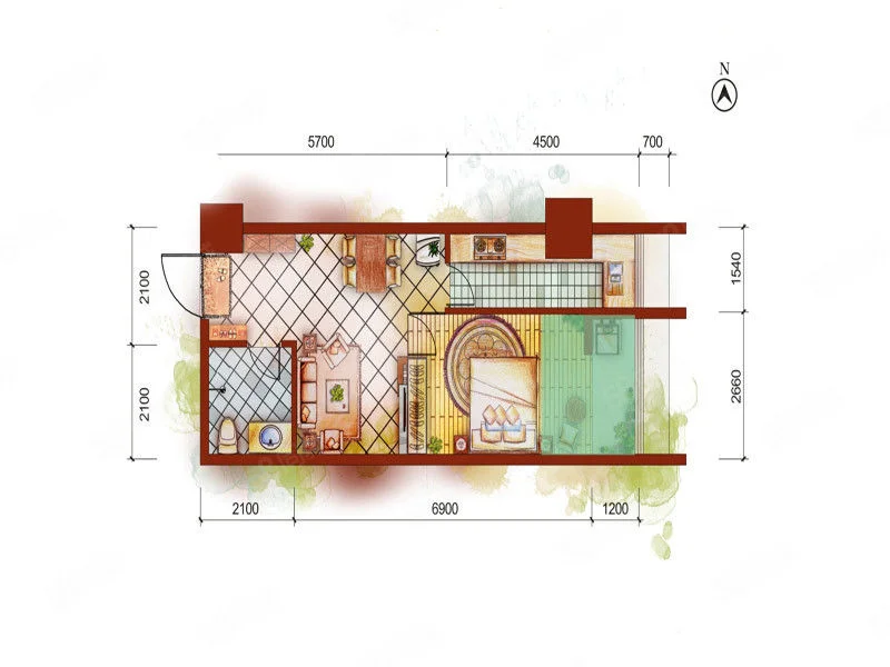 2 室 2 厅 1 卫