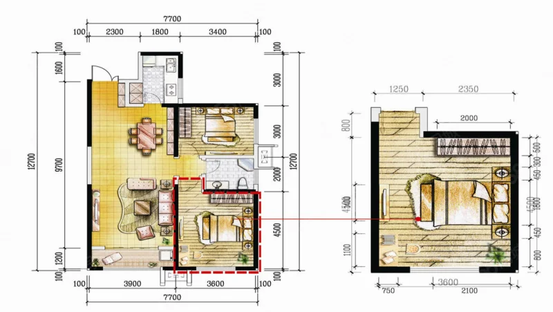 2 室 2 厅 1 卫