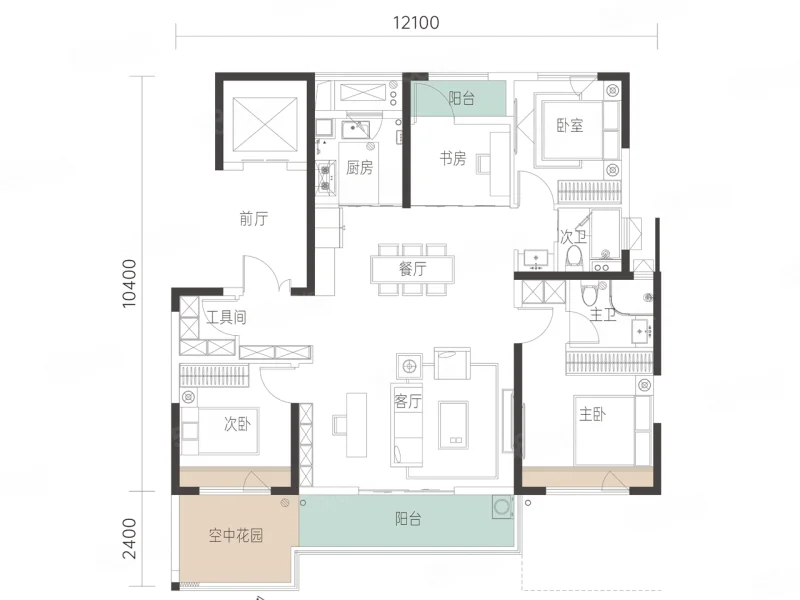 2 室 2 厅 1 卫