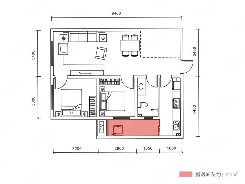 2 室 2 厅 1 卫